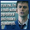 Description: the Tenth Doctor speaking, with text: 'trust me, I'm a multi-author pop-cultural post-modern pseudomyth.'